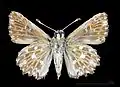 Длина переднего крыла 12—16 мм[5]. Сверху передние крылья коричневые, с неясным рисунком и шестью-семью мелкими прозрачными участками; у самцов передние крылья снизу без пушистого андрокониального поля[5].