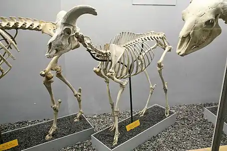 Толсторог — крупное парнокопытное млекопитающее довольно плотного и мощного телосложения, с невысокими и сильными конечностями, толстой, короткой шеей, небольшой головой и слабо выступающим из меха хвостом.