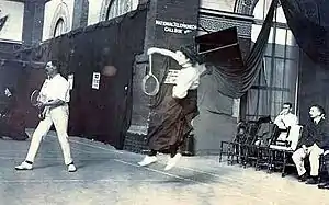 ![]() Джордж Томас и Этель Томпсон во время игры в бадминтон | |
