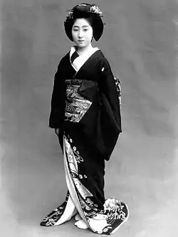 - куротомэсодэ (яп. 黒留袖, чёрное томэсодэ) — наиболее формальное кимоно замужней женщины. Обязательно имеет пять камон. Его носят матери молодых на японской свадьбе, а также гейши на официальных церемониях, например, при нанесении новогодних и августовских визитов, выказывающих уважение учителям. Куротомэсодэ гейши относится к классу кимоно сусохики и отличается от парадных кимоно обычных женщин длиной подола и расположением узора. После Второй мировой войны подкладной воротник «эри» и подкладка куротомэсодэ — белоснежные, ранее подкладка была алого цвета для женщин в детородном возрасте и чёрной (темно-синей) для пожилых.