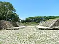 Дворец Подземного мира (Palacio del Inframundo) — находится на восточной стороне первой и второй платформ. На нижней платформе расположен вход в лабиринт дворца. Он представляет собой три проема со ступенчатыми ложными сводами. Верхняя часть сооружения, в настоящее время представляет приподнятый над уровнем второй платформы фунтамент, с остатками колонн и восточной стены. Во дворе здания сохранился высохший колодец.