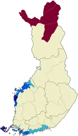 двуязычные - финский - язык большинства, саамские -языки меньшинства