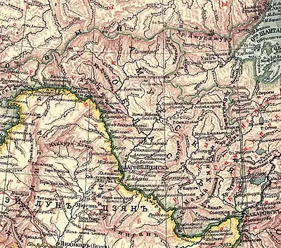 Массовое переселение в Амурскую область из европейской части России, начавшееся с 1862 года, привело к возникновению многочисленных новых поселений. При этом переселенцы нередко давали названия новым населённым пунктам в память о родных местах — сёлах, уездах, губерниях. Так на карте области появились названия Чуевка, Светиловка, Лозовое, Райгородка, Романкауцы, Рублёвка, Сукромли, а также Тамбовка, Ромны, Ядрино, Екатеринославка, Новгородка, Константиноградовка, Тавричанка, Харьковка, Лебедино[2].