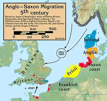 Название «Англия»[3] происходит от древнеанглийского слова Englaland, что означает «земля англов»[4]. Самое раннее письменное использование термина «Engla londe» содержится в переводе конца IX века на древнеанглийский язык трактата «Церковная история народа англов» историка и богослова Беды Достопочтенного.