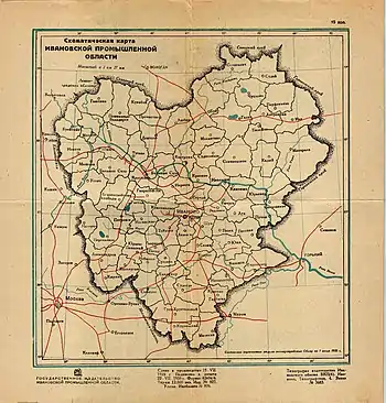 В январе 1929 года после ликвидации губерний Иваново-Вознесенск становится центром новой Ивановской промышленной области (ИПО), объединившей территории бывших Иваново-Вознесенской, Владимирской, Костромской и Ярославской губерний.