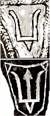 Трезубец, как и двузубец на боковой грани, имеют чёткие очертания, это ясно узнаваемые знаки, а не орнаментальные фигуры.