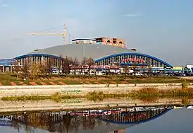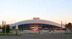 Здание размером 102 на 102 метра представляет собой сферический железобетонный купол, который как бы «парит» в воздухе. Внутри здания нет колонн, поддерживающих оболочку, а углы, на которые опирается купол, размещены на специальных катках и могут двигаться. Конструкция является сборной и может «дышать», опускаясь или поднимаясь в зависимости от перепадов температуры (в Челябинске климат континентальный, температура зимой может опускаться до −40°С, летом подниматься до +40°С[3]). На момент строительства такое техническое решение из сборных железобетонных плит такого размера объекта не имело случая в мировой практике[4]. Вес купола, собранного из 1500 железобетонных плит, стянутых канатами — свыше 5000 т[5].
