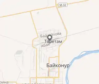 Торетам является пригородом Байконура, к которому посёлок примыкает с севера. Город отделён от посёлка железобетонной стеной с двумя контрольно-пропускными пунктами. Многие жители посёлка работают в Байконуре.