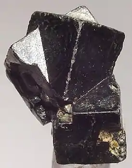 ![]() Группа взаимопроникающих двойниковых кристаллов торианита из Амбатофоци, Мадагаскар (размер: 1.6х1.4х1.3 см) | |