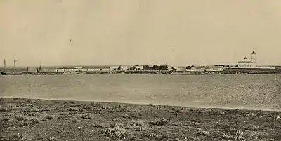 Вид на колокольню Церкви Св. Иоанна Златоуста (1832—1837) с моря. Объект отмечен в лоциях.