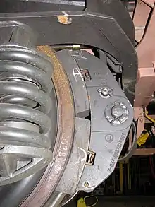 Тормозной механизм находится внутри втулки. При торможении цилиндрический тормозной барабан, состоящий из двух половин, раздвигается, прижимаясь к внутренней поверхности корпуса втулки.