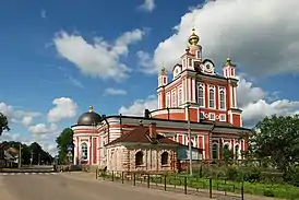 - Корсунско-Богородицкий собор (1795—1804), где до 1920 года находилась древняя (не позднее XIV века) икона Богоматерь Одигитрия, называемая «Эфесской», «Полоцкой», «Корсунской» или «Торопецкой». В 2010 году предлагалось вернуть реликвию в торопецкий собор[63][64][65] В советское время собор был обезображен: снесена (и пока не восстановлена) колокольня над входом.