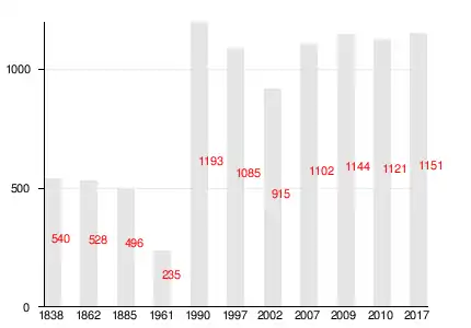 Согласно административным данным 2007 года население деревни Торошковичи Дзержинского СП составляло 1107 человек, в 2009 году — 1144[24][25].