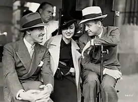 ![]() Ричард Торп (справа), Фэй Рэй и Сизар Ромеро на съёмках фильма «Обманутые мошенники» (1934) | |