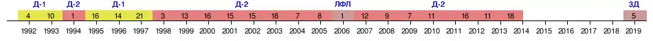 | Сезон | Лига | Место | Примечания |