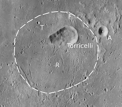 - Образование сателлитного кратера Торричелли R относится к нектарскому периоду[5].