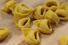 Тортелли́ни (итал. Tortellini) — итальянские пельмени из пресного теста с мясом, сыром или овощами. Историческая родина тортеллини — регион Эмилия, однако сейчас эту разновидность макаронных изделий готовят по всей Италии. По своей форме тортеллини напоминают маленькие пельмени, уголки которых соединяют, чтобы получилось кольцо или бутончик.