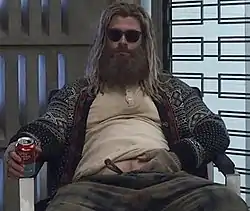 После того как Тор не смог убить Таноса в «Войне бесконечности», он становится толстым пьяным правителем беженцев Асгарда в Тёнсберге, Норвегия. Говоря о столь резкой смене персонажа, Хемсворт сказал: «У меня просто было своё мнение. В этот раз я хотел сделать что-то другое. Каждый фильм я хотел этого, особенно последние два, и они были согласны», и добавил: «Мы снимали много часов и дней и обсуждали, как далеко мы можем продвинуть Тора и что мы можем сделать по-другому»[44]. Энтони Руссо добавил: «Несмотря на то, что в фильме есть много забавного в его физическом состоянии, это не шутка. Это проявление того, в каком состоянии он находится на уровне персонажа, и мы думаем, что это один из самых правдоподобных аспектов его личности. Ведь это очень распространённая реакция на депрессию и боль»[45]. История Тора была его любимой историей, сказав: «Часть магии Криса как комедийного актёра — это его преданность глубине персонажа на самом серьёзном уровне… Это так коварно и сногсшибательно, когда комедия исходит из места полной самоотдачи и эмоциональной сложности»[46]. Хемсворту пришлось около трёх часов делать причёску и грим для перевоплощения, что также потребовало от него ношения большого силиконового костюма-протеза; на съёмках он называл себя «Тором Лебовски»[47]. Первоначально предполагалось, что Тор вернётся к своему «старому точеному я» в середине «Финала», но Хемсворт успешно выступил за сохранение старого телосложения Тора[47].