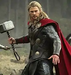 ![]() Крис Хемсворт в роли Тора в фильме «Тор 2: Царство тьмы» (2013) | |