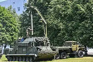 Модификация комплекса 9К331 с размещением на колёсной базе. Аппаратная кабина размещена на автомобиле Урал-5323, антенно-пусковой пост размещается на полуприцепе ЧМЗАП 8335.[23]