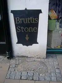 Согласно Истории королей Британии Гальфрида Монмутского (ок. 1136), Брут впервые ступил на землю Британии «на Тотонском побережье». На Передней улице в тротуар вмонтирован «Брутов камень» — небольшой гранитный валун, на который, по местному преданию, Брут ступил, выходя из корабля. В это время он, как рассказывают, произнёс:[3]