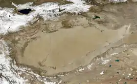 Спутниковое изображение бассейна Тарима зимой