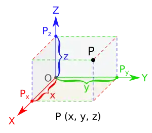 В выбранной системе координат любую точку двумерного евклидова пространства можно представить как упорядоченную пару (x; y) действительных чисел. Аналогично, точку n-мерного евклидова пространства (а также векторного или аффинного пространства) можно представить как кортеж (a1, a2, … , an) из n чисел.