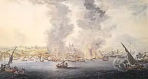 Жан Бальтазар де ла Траверс. Морская баталия (Штурм Очакова или Измаила). 1790-1791. Бумага, акварель. НМККГ
