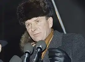 ![]() Николай Травкин на митинге в декабре 1991 года | |