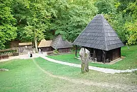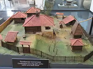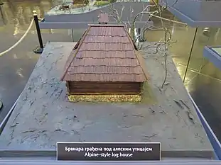 Срубные избы-брвнары (серб. брвнара) — также примитивный вид жилища с одной комнатой, без потолка, с открытым очагом, иногда без фундамента, которые крылись дранкой. Такие дома легко перевозились на новое место жительства. Наподобие срубных изб строили домики из плетня, обмазанные глиной (серб. плетара). Эти виды примитивных домов стали постепенно исчезать со второй половины XIX века. Бедное население Косова и Метохии какое-то время продолжало жить в подобных хижинах (серб. крбуљача), пастухов горных районов Боснии и Герцеговины и Черногории в XX веке ещё сохранялись эти типы жилища (при том, что в Боснии хижины были деревянными, а в Герцеговине каменными)[3]. Особой разновидностью срубного дома являлся т. н. ваят (серб. вајат, ајат) — небольшое однокамерное и неотапливаемое здание без окон, использовавшееся как временное жилище для супружеских пар. Ваяты строились в отдалении от остальных домов деревни/задруги, чтобы во время брачной ночи молодожёны не мешали односельчанам спать. Сейчас сохранившиеся ваяты переоборудованы в кладовки или амбары[4]. К 1968 году в шумадийском селе Ярменовци каждый второй жилой дом имел кладовую, переоборудованную из ваята.