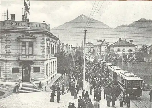 Торжественное открытие трамвая 30 ноября 1902 г. (Дорнбирн, Вокзальная улица / Bahnhofstraße)