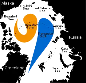 Трансарктическое течение является механизмом, обеспечивающим направленный дрейф льдов, который используется, в частности, для организации полярных дрейфующих станций.