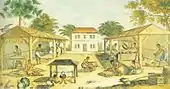 Плантация сахарного тростника в Суринаме, литография XIX века