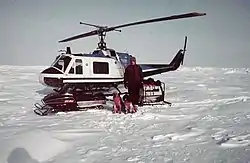 4 января 1980 года судно добралось до прибрежной открытой воды, затем зашло в ледовую бухту Поларбьорнбухте при SANAE. Сразу же началась круглосуточная разгрузка. Вскоре прилетел самолёт экспедиции, модернизированный убирающимися в полёте лыжами и шестью 340-литровыми топливными баками. Он перебросил 45 т грузов на 500 км южнее, где возле горы Ривинген на высоте 1800 м прилитевшие на самолёте участиники экспедиции (Ранульф, его жена, Шепард и Бёртон) устроили зимнюю базу. Они построили несколько хижин из гофрированного картона и так же на самолёте вернулись на станцию SANAE.
