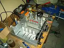 - Приемная часть — супергетеродин с двойным преобразованием частоты, с переменной первой и фиксированной второй ПЧ.
