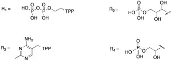 В первой половине этого пути, His263 используется для эффективного отщепления С3 гидроксильных протонов, что позволяет 2-углеродному фрагменту отщепляется от фруктозы 6-фосфата[3]. Кофактор, необходимый для этого шага — тиаминпирофосфат. Связывание тиамина с ферментом не приводит к каким бы то ни было серьёзным конформационным изменениям фермента; наоборот, фермент состоит из двух гибких петель в активном центре, которые делают тиаминпирофосфат доступными для связывания[2].