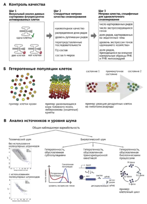 Б. Примеры исследования гетерогенных популяций клеток: разные клеточные типы, спектр состояний клеток в ткани, спектр состояний клеток при развитии или ином биологическом процессе