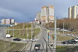 Вид на проспект Универсиады и транспортную развязку «Аметьево» со стороны микрорайона Танкодром (апрель 2021)