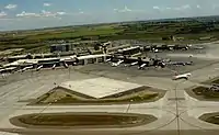 Международный аэропорт Калгари (код ИКАО: CYYC, код ИАТА: YYC) — единственный международный аэропорт в области Калгари и один из всего лишь двух — в провинции. Аэропорт является основной базой и крупнейшим узлом WestJet Airlines, а также узловым для Air Canada. В общей сложности регулярные рейсы по расписанию в этот аэропорт и из него осуществляют около 20 пассажирских авиакомпаний. Он является также крупным узловым аэропортом для нескольких грузовых авиалиний, в том числе DHL, FedEx, Purolator и United Parcel Service.