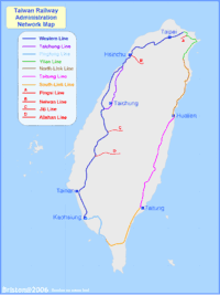 На Тайване весьма разветвлённая сеть железных дорог, общая длина которых составляет 1580 км (2009 год). При этом в 1950-е протяжённость сети была около 3500 км, в том числе порядка 2 тыс. км дорог узкой колеи. Сокращение железнодорожного полотна на Тайване связано с закрытием почти всех узкоколейных линий.