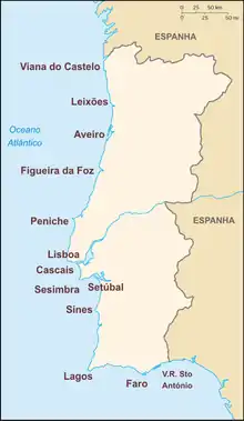 Основными портами являются порт Лиссабона, Лейшойнш, обслуживающий Порту, порт Сетубал и порт Синиш[6].