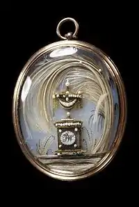 Траурные украшения должны были содержать какой-либо символ, напоминающий об их предназначении: латинскую надпись, миниатюрный портрет умершего, его инициалы или прядь его волос. Украшения с волосами усопшего были особенно популярны и составляют особую разновидность траурных украшений. Волосы заплетались, либо укладывались в узор.