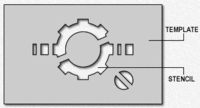 Однослойный трафарет (слева - приспособление, справа - изображение) и двухслойный трафарет (вверху-приспособление, внизу-изображение) | ||||||||||