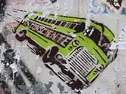 - Бомбить — создавать нелегальные изображения на улицах, в том числе с помощью трафарета.