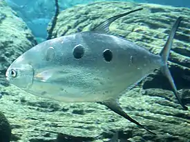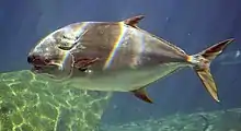 ![]() Тупорылый помпано (Trachinotus blochii) | ||||||||