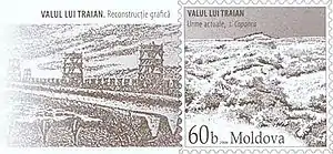 Верхний Траянов вал — начинается возле города Бендеры (Молдавия) и тянется к реке Прут к современному молдавскому городу Леово.
