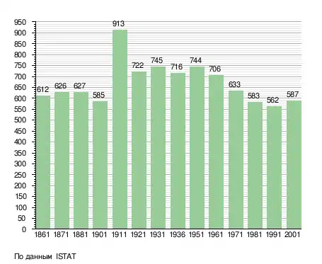 Население составляет 584 человека (2008 г.), плотность населения составляет 34 чел./км². Занимает площадь 17 км². Почтовый индекс — 25070. Телефонный код — 0365.