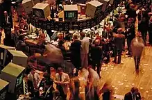 - Трейдер в зале — обычно это профессиональные торговцы, представляющие интересы большого числа клиентов или крупные заявки. Их рабочие места располагались выше уровня пола биржевой ямы, их лучше было видно, им лучше было видно не только других торговцев, но и информационные мониторы.