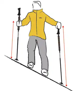 - На горизонтальных участках и подъёмах позволяют перенести часть нагрузки с ног на плечевой пояс, облегчая продвижение вперед.[1]
