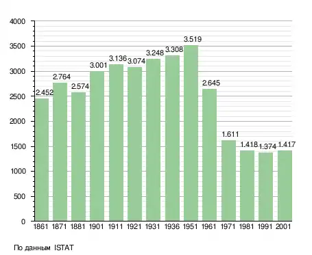 Население составляет 1417 человек (2008 г.), плотность населения составляет 22 чел./км². Занимает площадь 64 км². Почтовый индекс — 53020. Телефонный код — 0577.